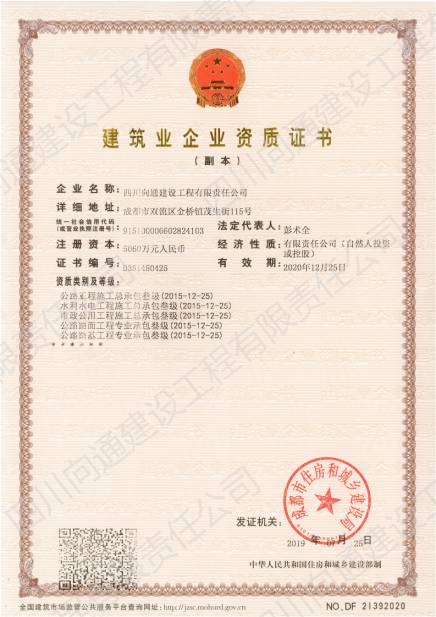 四川向通建設(shè)工程有限責(zé)任公司 四川向通建設(shè)工程有限責(zé)任公司成立于2007年,注冊(cè)資本金5060萬元,是一家專業(yè)從事瀝青混合料生產(chǎn)、專業(yè)分包以及市政道路、公路、路基工程專業(yè)施工建設(shè)的企業(yè)。公司注冊(cè)地址及生產(chǎn)廠區(qū)位于成都市雙流區(qū)金橋鎮(zhèn)茂生街115號(hào),總占地面積約120畝;辦公地址位于雙流區(qū)海濱城海濱廣場(chǎng)7座11樓。公司生產(chǎn)廠區(qū)(雙流金橋)現(xiàn)有LB-5000型瀝青混合料拌合樓1套,每小時(shí)瀝青混合料生產(chǎn)量可達(dá)380噸。此外,根據(jù)項(xiàng)目需要,公司在多地建立4000型拌合站以服務(wù)施工(廣安齊福、達(dá)州、綿陽(yáng)等),每小時(shí)瀝青混合料生產(chǎn)量為320噸。各種國(guó)內(nèi)外道路施工機(jī)械:攤鋪機(jī)、壓路機(jī)、銑刨機(jī)、灑布車、封層車、吊車、拖車、等70余臺(tái),可滿足各種道路施工需求。公司近100輛保溫運(yùn)輸車輛均安設(shè)保溫板、加塞保溫棉、覆蓋棉絮和隔熱防水雨篷,有效減少瀝青混合料在運(yùn)輸過程中的溫度流失進(jìn)而保證瀝青路面的施工質(zhì)量。 公司目前擁有眾多優(yōu)秀的技術(shù)人才,成熟的市場(chǎng)渠道,良好的企業(yè)聲譽(yù)。現(xiàn)有各專業(yè)施工人才共計(jì)79人;5支專業(yè)的施工班組可根據(jù)現(xiàn)場(chǎng)的具體情況制定實(shí)施性施工方案。今后公司將竭誠(chéng)為各界客戶提供出色的產(chǎn)品和服務(wù)及具有競(jìng)爭(zhēng)性的價(jià)格和具有創(chuàng)新精神的高效解決方案。 公司曾經(jīng)榮獲:新津鄧雙段被新津縣政府評(píng)為“優(yōu)良工程”;雙流宗申大道被雙流縣政府評(píng)為“優(yōu)良工程”;成都后花園被成都市政府評(píng)為“重合同守信譽(yù)單位”;被三一重工評(píng)為“有遠(yuǎn)見單位”。并在2018年1月被中國(guó)五冶集團(tuán)評(píng)為“優(yōu)秀供方”;同年3月被四川交投評(píng)為2017年度“優(yōu)秀合作單位”的榮譽(yù)。榮譽(yù)的背后是我們公司所有員工堅(jiān)持不懈的努力。 作為現(xiàn)代化的企業(yè),公司將以技術(shù)為切入點(diǎn),以信譽(yù)為支撐點(diǎn),以市場(chǎng)為著眼點(diǎn),促進(jìn)管理創(chuàng)新和技術(shù)創(chuàng)新。因此我公司能在短時(shí)間內(nèi)迅速發(fā)展成為一家擁有各類中大型施工機(jī)械設(shè)備的公司。在今后的工作中我們將借用現(xiàn)代電子信息溝通的便利為公司的發(fā)展助力,同時(shí)將秉承發(fā)揚(yáng)以往的團(tuán)結(jié)拼搏精神,推動(dòng)公司成為“快穩(wěn)型”發(fā)展的企業(yè)。 在未來的發(fā)展過程中,四川向通始終秉承“以質(zhì)量求生存,以信譽(yù)求發(fā)展”的企業(yè)管理理念,以“啟后為先創(chuàng)佳績(jī),爭(zhēng)做路建行業(yè)標(biāo)”的企業(yè)宗旨與建設(shè)單位建立合作關(guān)系,創(chuàng)造更加輝煌燦爛的明天! 四 川 向 通 建 設(shè)